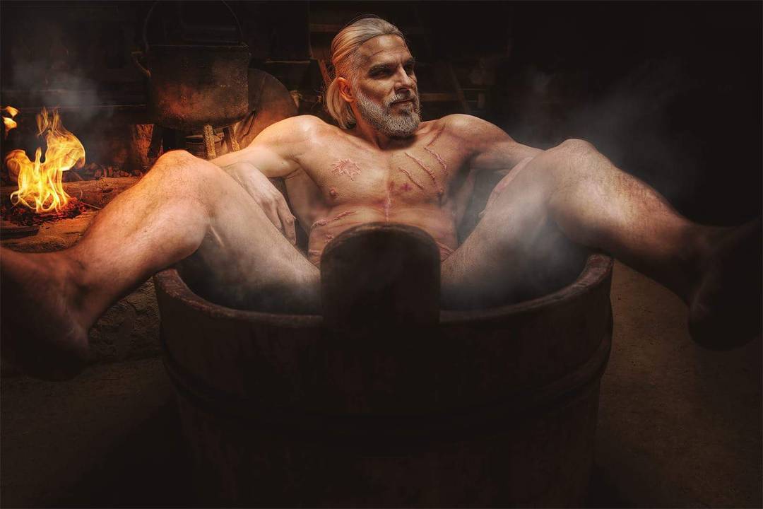 The Witcher 3 Cosplay Calendar features official Geralt promo model, famous bathtub shot, nipples