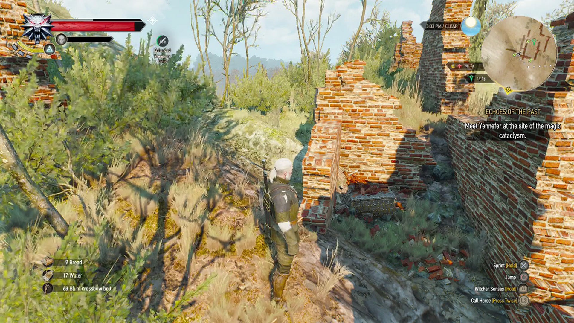 North of the Hangman’s Tree signpost will be another called Hindhold. If you don’t see it on your map, it just means you haven’t been there, so ride north from Hangman’s tree towards the question marks that will likely stand in its place. You actually need to continue north when the road splits to the left and right, so prepare to do some off-roading. When you arrive at some stone ruins you’ll know you’re there, and you’ll have to head inside to get the loot you’re looking for.