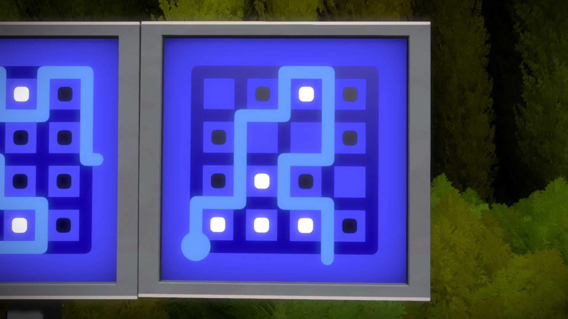 (You don't need to exit and enter the board's puzzle interface every time you solve an individual puzzle, by the way; on consoles, just move the right analog stick or tap either of the bumpers to move between terminals. You need to complete them in order, though; each becomes available as you solve the previous one.)