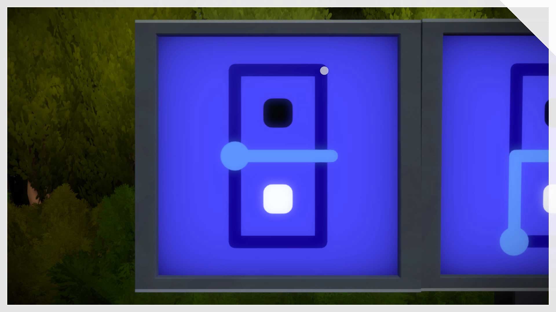 Trot a little further along and you'll come to a pair of maze boards standing around in the middle of nowhere. You'll probably see the blue ones first, as they're in the open, apparently in some kind of field. Solve this entire maze board with your very own brain, and you'll be half way to opening that door.
