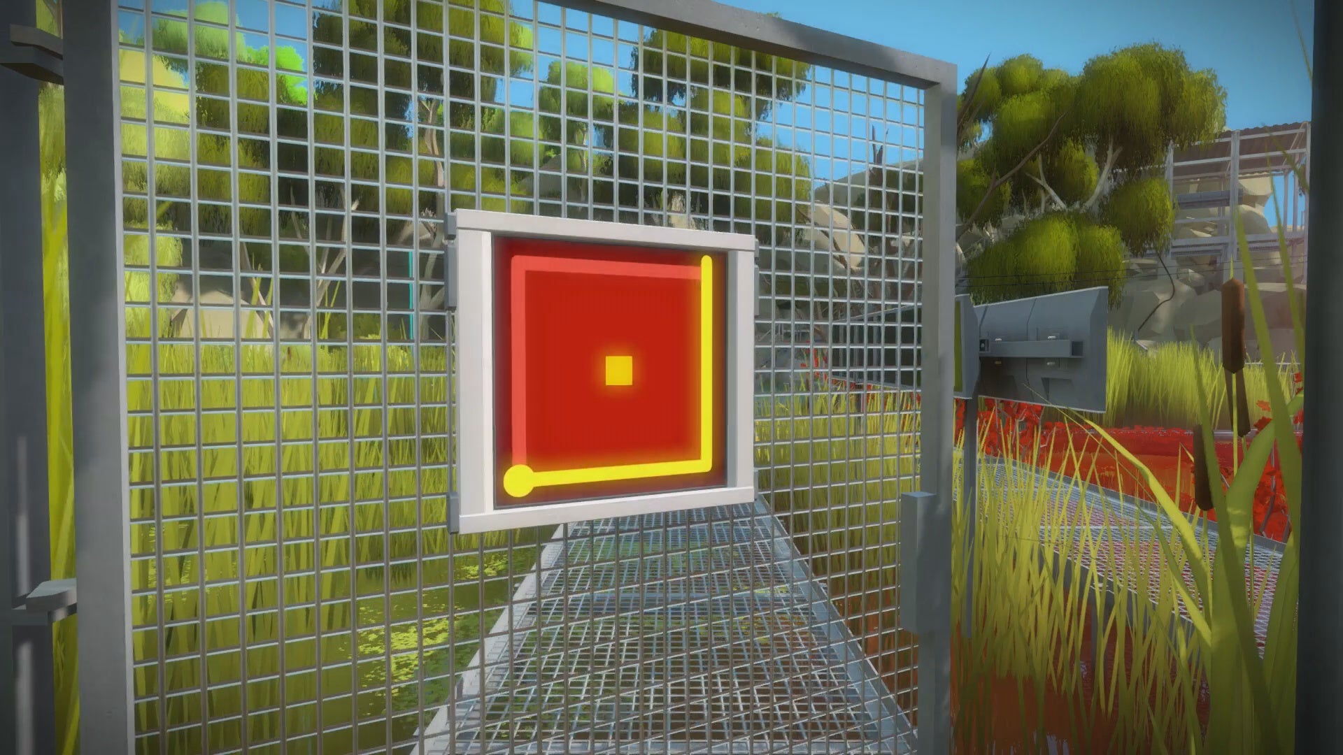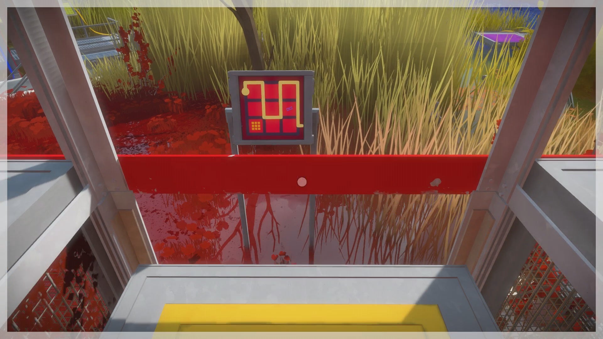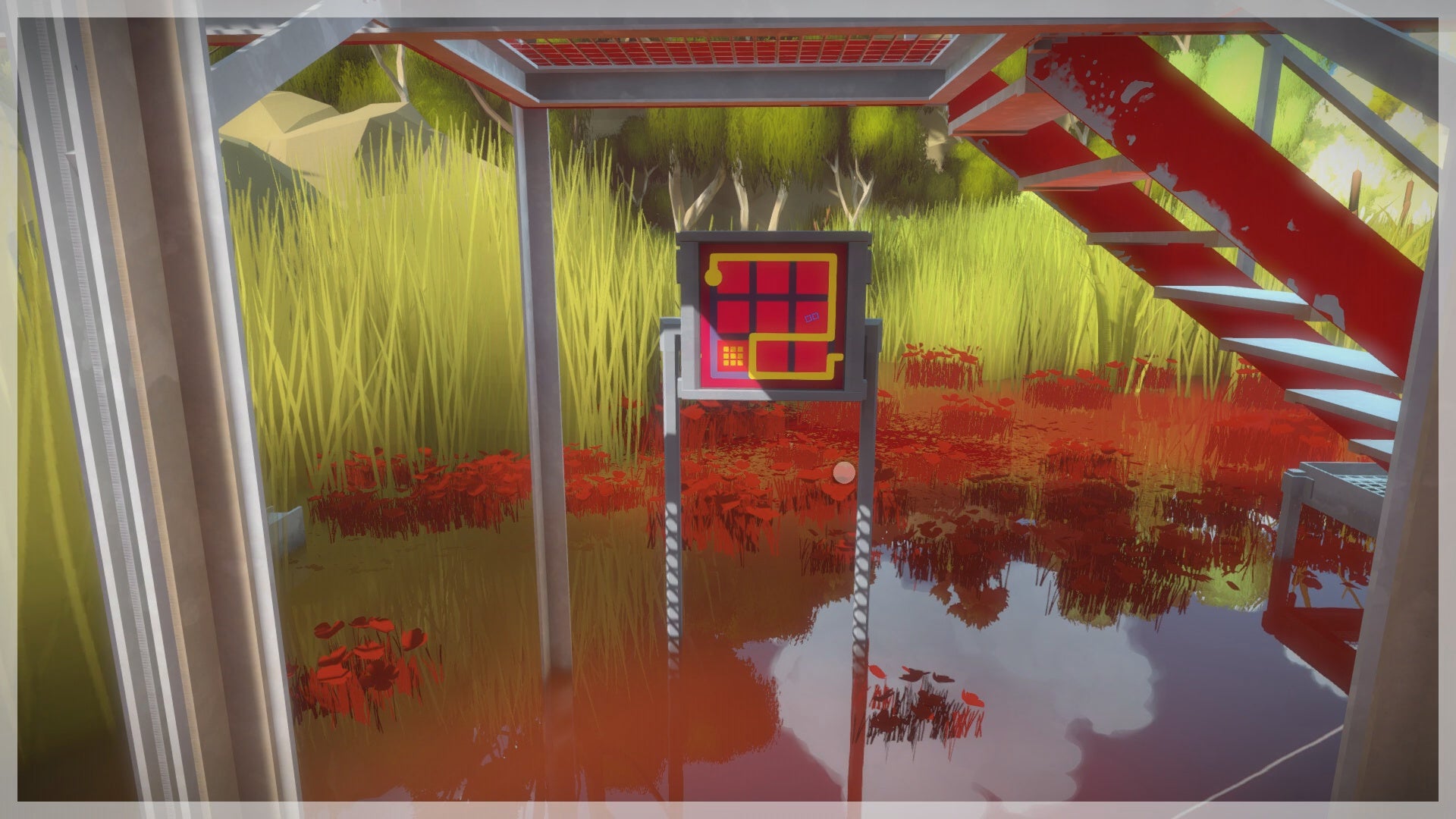 Return to the surface, and backtrack through the metal gate once more. Head down the stairwell into the red section of the Marsh, and solve the next puzzle segment starting from the left. Solving this series of puzzles will open a new door to the final puzzle segment of The Marsh.