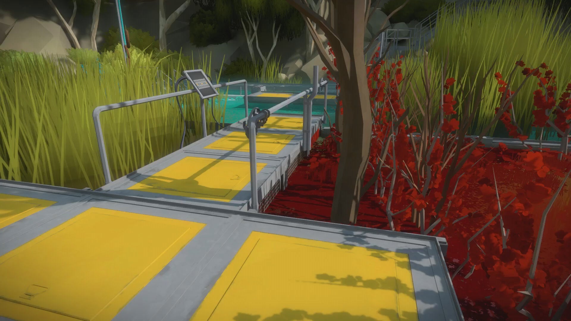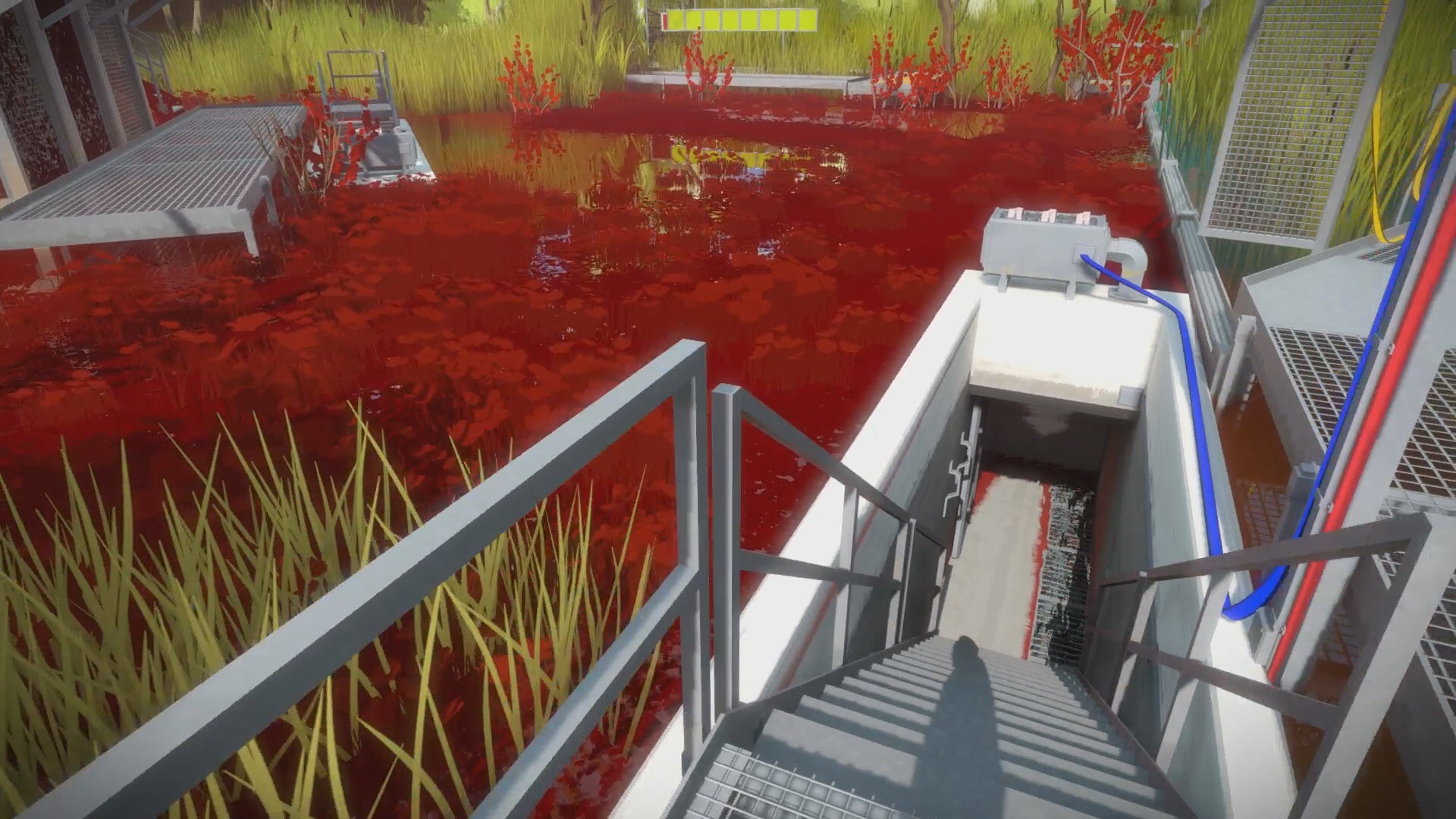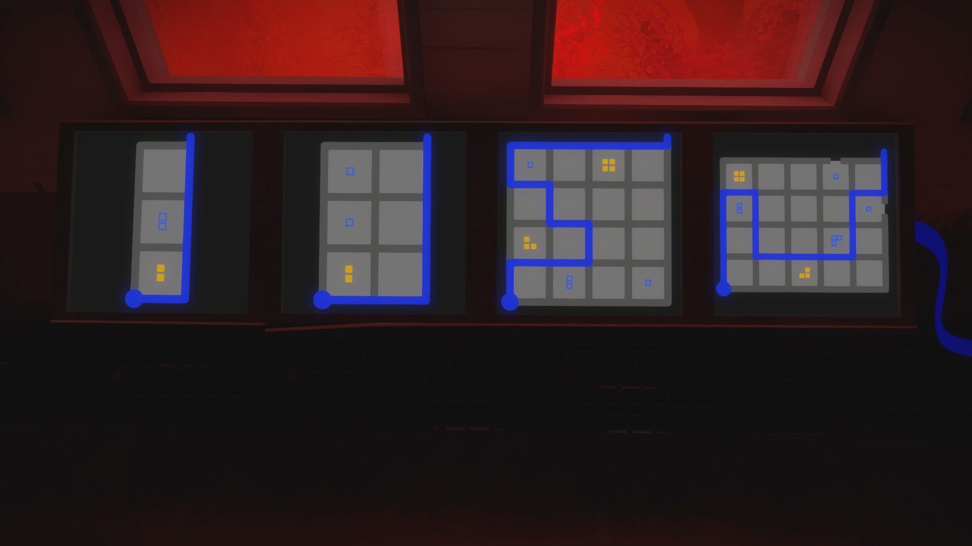 Return to the surface, and backtrack through the metal gate once more. Head down the stairwell into the red section of the Marsh, and solve the next puzzle segment starting from the left. Solving this series of puzzles will open a new door to the final puzzle segment of The Marsh.