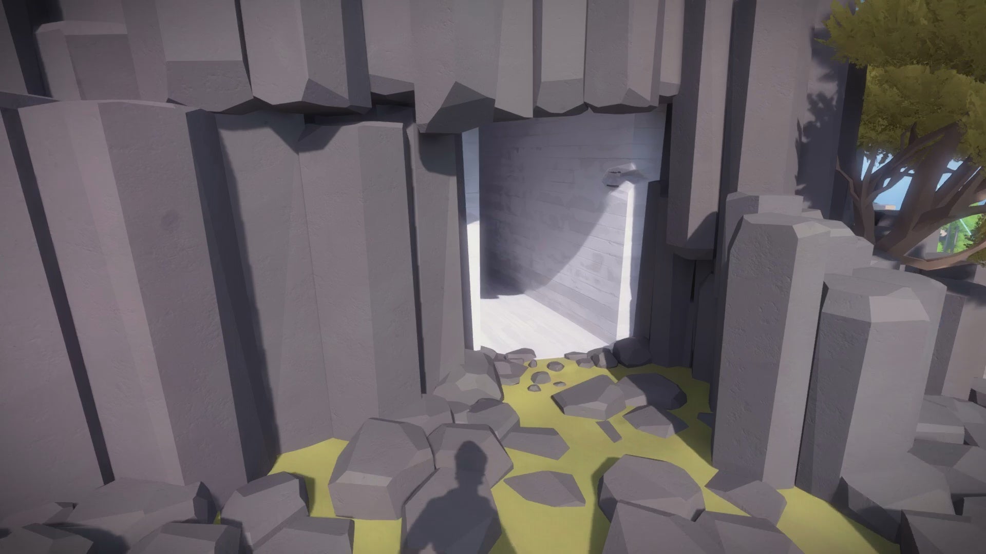 Once you’ve activated all of the laser beams, head to the top of the Mountain. Solve the floor puzzles to unlock the staircase leading down into the Mountain. Take a few steps down the staircase, then look up at the yellow box to complete the line switch underneath. Head downstairs, and complete the Mountain puzzles until you reach a statue sitting on the floor.
