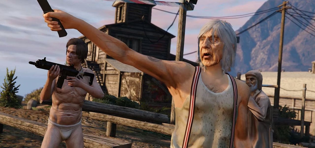 My favorite of these GTA 5 GIFs is the one with the hillbilly holding a semi-automatic in his underwear. Reminds me of Main Street in my hometown.