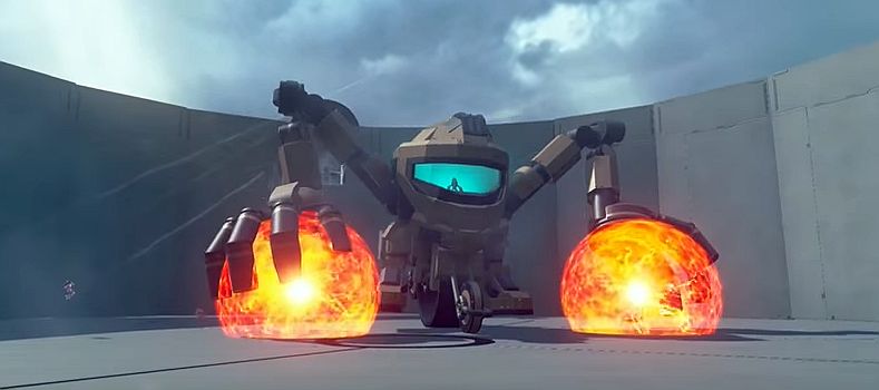 In order to disable and ultimately destroy the machine, there are power cores on the boss which need to be hit in order to cause damage. If players are able to blow up both cores on each arm, the machine's visor will open allowing players to shoot the inside to blow of the final power core.