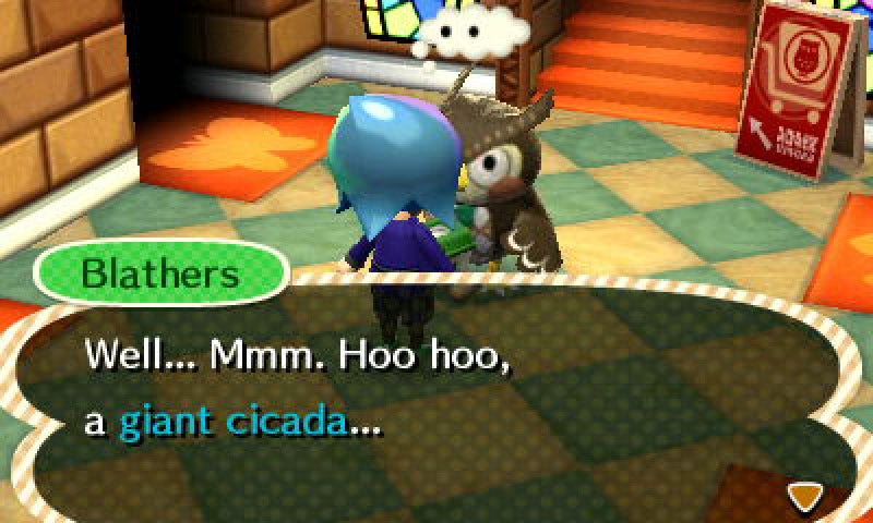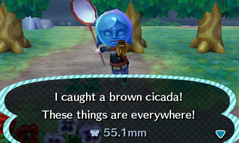 But this morning, things were different. Literally different; Animal Crossing operates on a rigid schedule based on the calendar, with fairly dramatic changes happening on the first of each month. Today, July 1, marked the beginning of summer in New Leaf. Yes, the solstice happened a week ago, and the game marked that occasion, too. But real summer -- the kind where you feel uncomfortable and long for a drink of water just by playing the game -- kicked off today. June saw unpredictable weather: Sunny one day, rainy the next, with occasional days of leaden grey skies that spoke of withering humidity through the quality of light alone. With the advent of July, however, the weather has changed. The skies are clearer, the sunlight more vivid. And most of all, the cicadas are out.