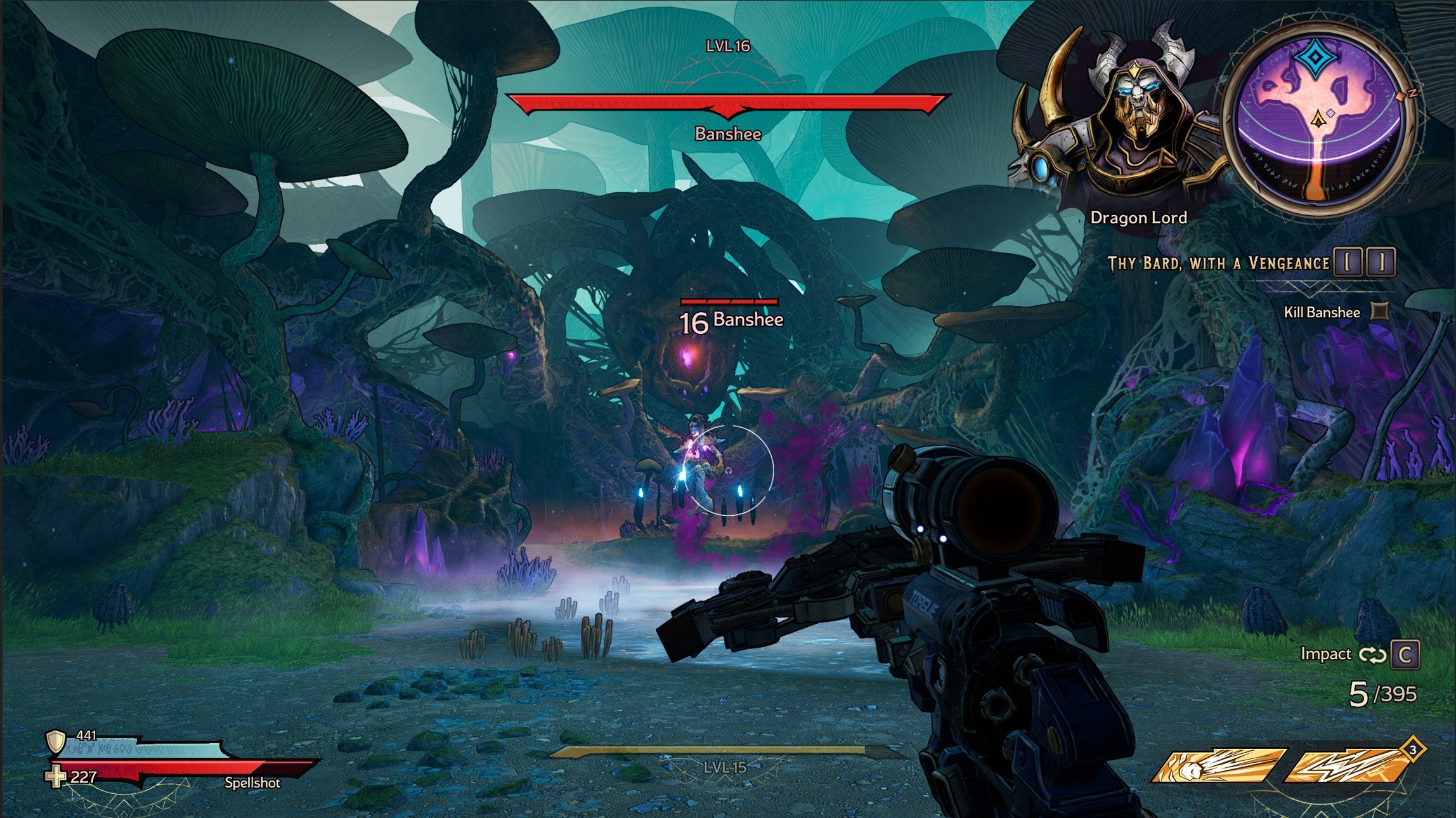 Take Banshee in Weepwild Dankness for example. This is one of the earlier bosses that you’ll encounter in Tiny Tina’s Wonderlands. Once you’ve beat them and successfully finished off their quest line, you can return to them, kill them again, quit, and kill them again. You can do this over and over until a legendary item drops, and it’s also a pretty great way to farm some XP for your character while you’re at it.