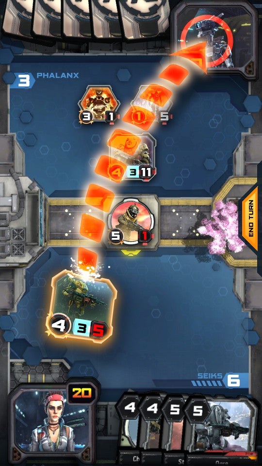 So far, standard fare. But Titanfall: Frontline is real-time synchronous turn-based game, played live with two players, with each player using command points to play their cards, followed by the other player’s turn.