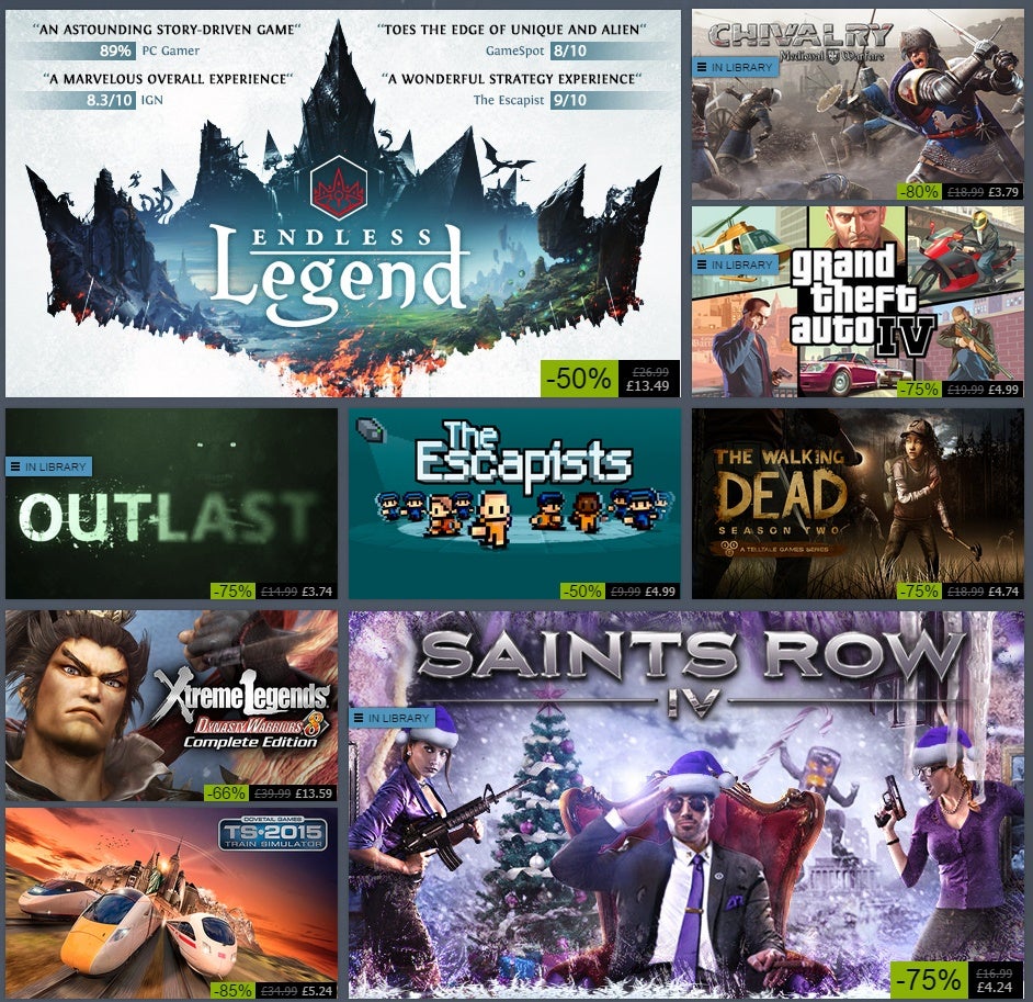 Today's set of deals include Outlast, The Walking Dead: Season 2, Chivalry, Saints Row 4 and many more. These deals will remain active for the next 48 hours. They will lose their "Featured" slot after 24 hours though and another set will take their place.