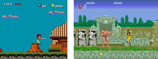 That same first-strike advantage fell to Sega in the West, however. Genesis launched with superior graphics and a visually stunning conversion of arcade brawler Altered Beast in tow — perhaps not the greatest game ever made, but more visually impressive and a lot more U.S.-friendly with its manly monster-punching action than the bizarre Keith Courage. Right out of the gate, Sega had the upper hand. Within a year of the Genesis launch, Sega had a line of top-flight American sports games locked down. A year after that, Sonic the Hedgehog launched and made a campaign of turning Mario into a laughingstock; after that, the race between Super NES and Genesis ran neck-and-neck, with TurboGrafx a distant third. The system's own de factor platformer mascot, Bonk, didn't even rate a mention in Sonic's campaign.