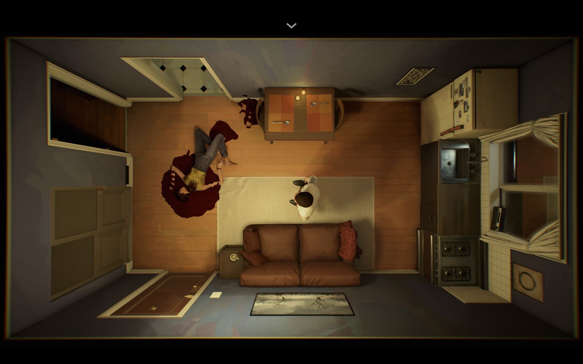 Twelve Minutes is not a game that requires a particularly complex explanation of its design. It’s a narrative adventure game told from a top-down perspective. You play as a husband returning home only to find two shocking things: first, a man claiming to be a cop banging on the door saying your wife is wanted for murder, and second, the fact that you’re in a time loop. Time resets to the moment you entered the apartment every 12 minutes. The same thing happens if you somehow die or are critically injured.