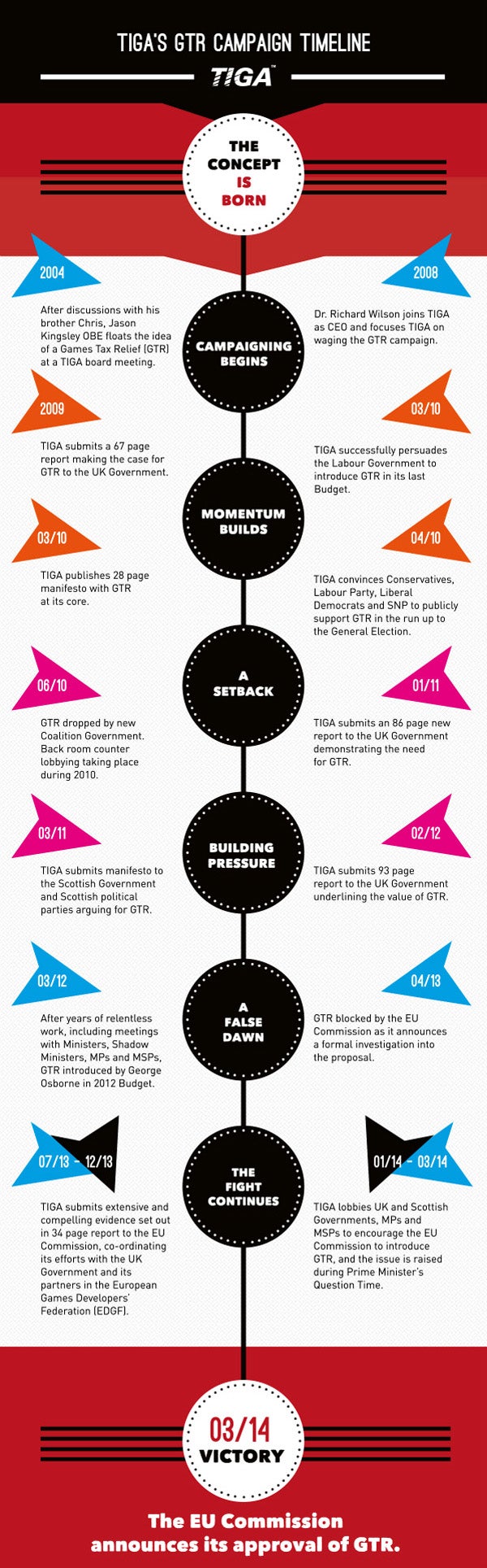 Ukie has published a quick guide regarding the UK games tax breaks [PDF]. The trade body also said it would be running a series of event across the UK for games business, where the companies will be briefed on the new laws and how the incentive will apply to them the tax breaks work. It was announced earlier today a £188 million tax incentive for the UK video game industry was approved by the EU commission. The extra investment will be applied starting today and through 2019. A timeline of the fight for the breaks and a breakdown of how the industry will be impacted are below courtesy of TIGA.