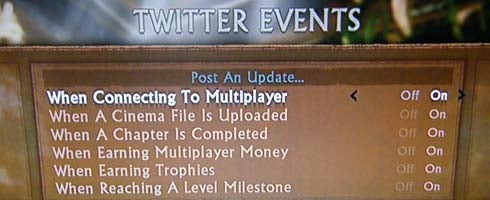 As reported by TheBBPS, Uncharted 2 features a host of Twitter integration options, allowing the game to automatically tweet when you earn Trophies, reach level milestones, and so on.