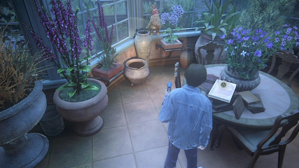 Once you head all the way downstairs, you’ll find another staircase. Walk past it and turn left; you’ll find yourself in a room with massive glass windows. On a table in here is a book about pirates. Pick this up; it’ll trigger some dialogue that then offers up another conversation trigger.