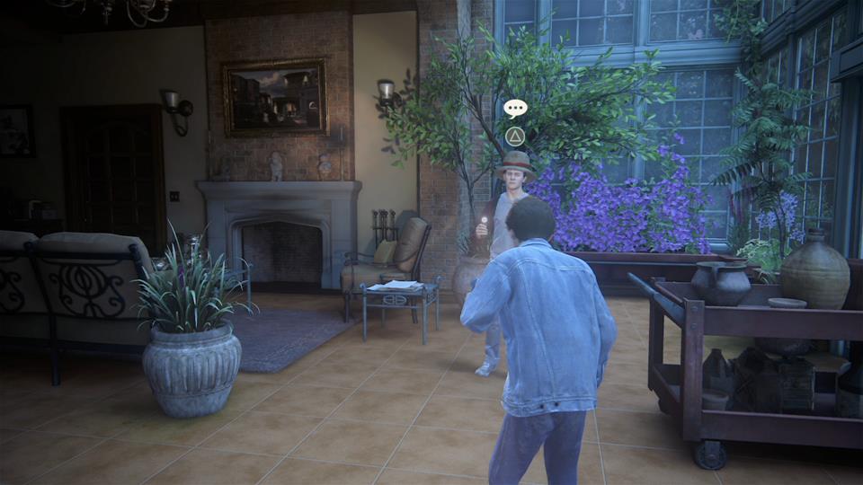 When you exit the puzzle room with the three crosses, turn left. Sam will follow and you’ll walk to a ledge that leads nowhere. Doing this will trigger some dialogue as the pair admire the view, and then another conversation trigger you can hit right after.