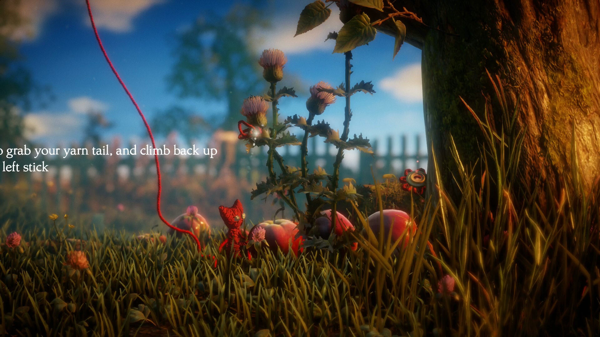 The first secret is found after climbing through the trees and passing the bird house. Anchor yourself on the branch to the right, and then lower Yarny to the ground. Pull the nearby thistles over and you’ll see the secret at the base of a tree.