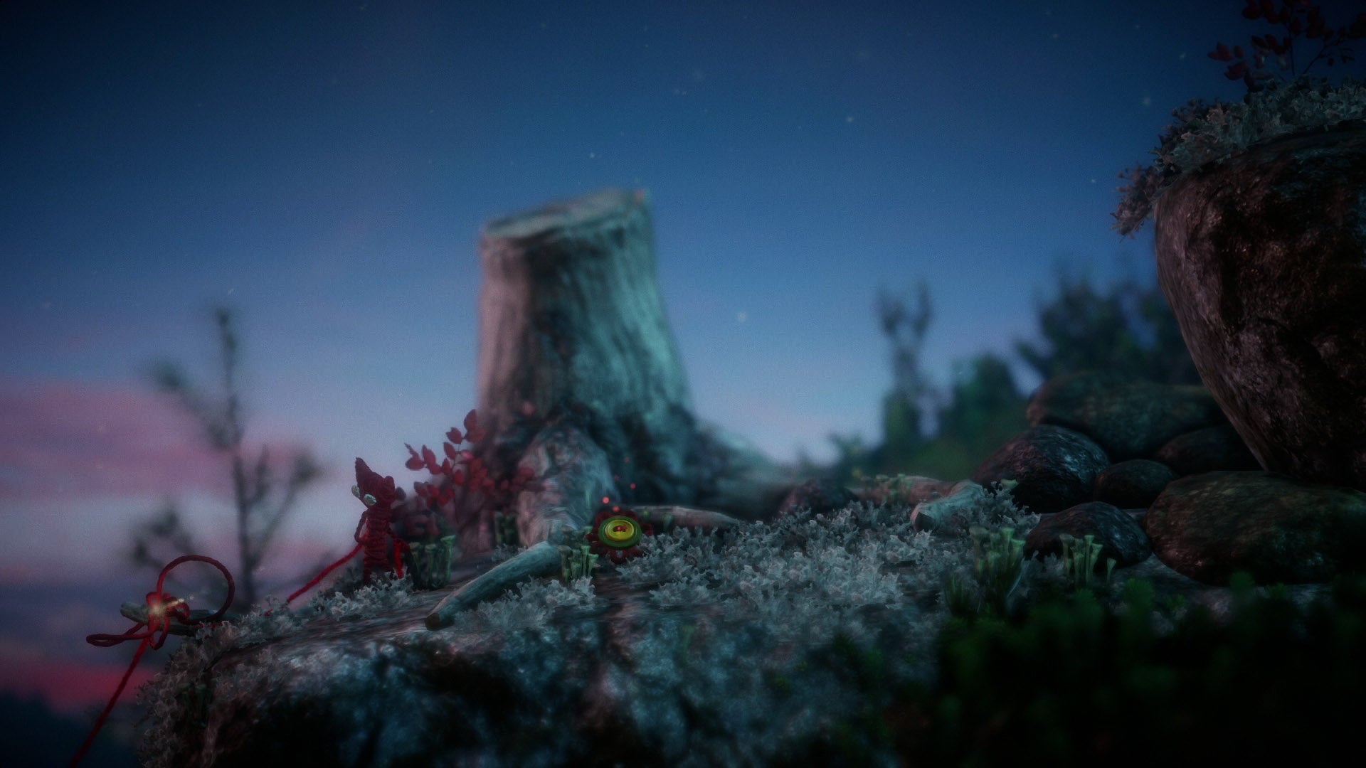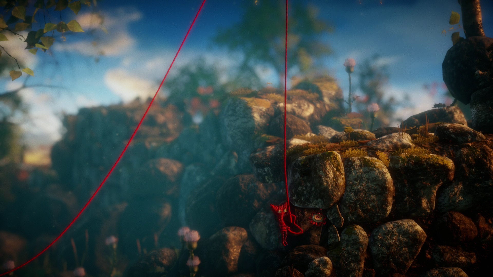 The next secret is found just after crashing the tricycle into the stump. Refill your yarn, then climb from one anchor point to another as you ascend the tree. When you reach the final anchor point that allows you to progress, tie yourself to it and lower Yarny down. The secret is buried in the rocks to the right.