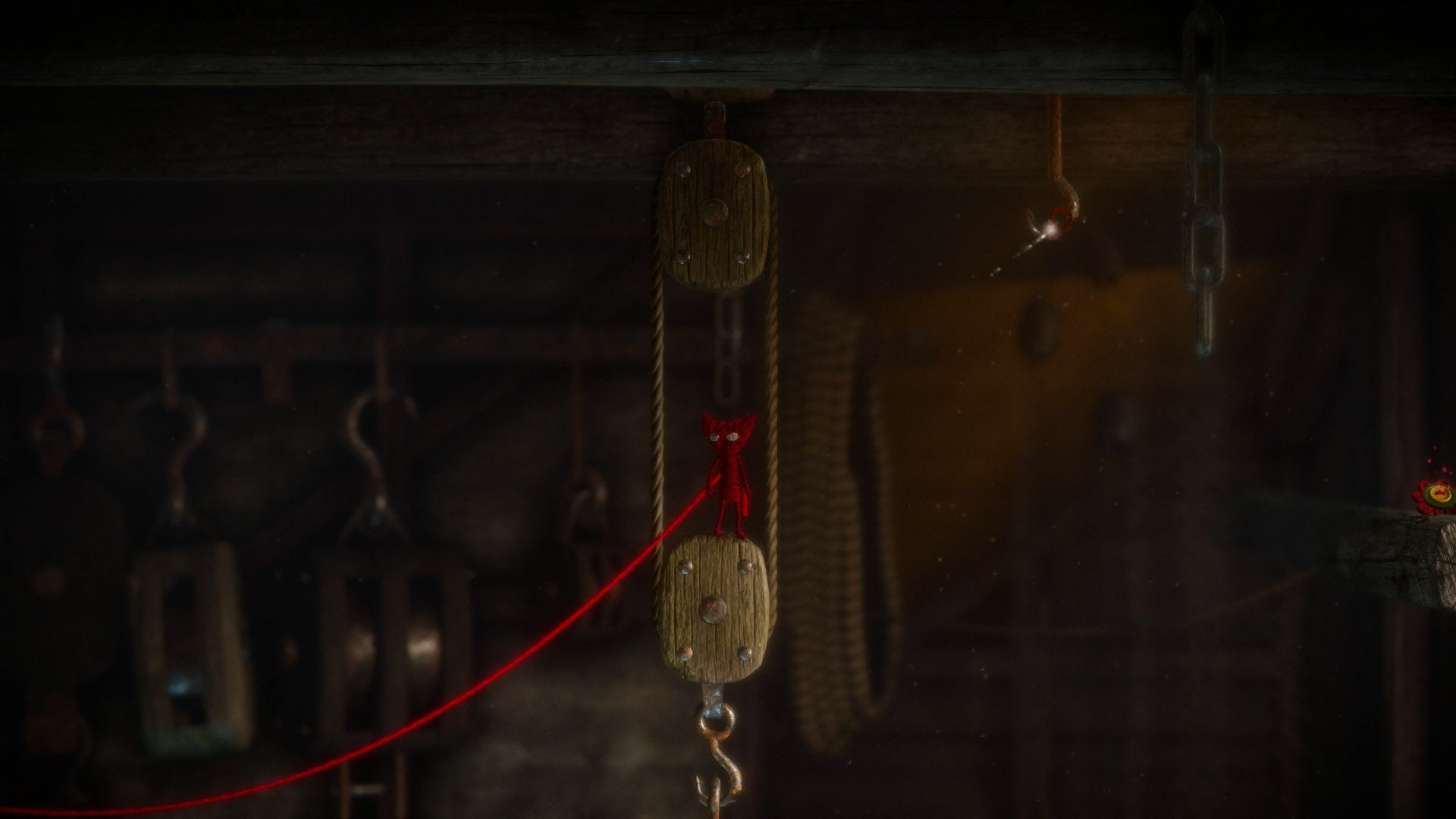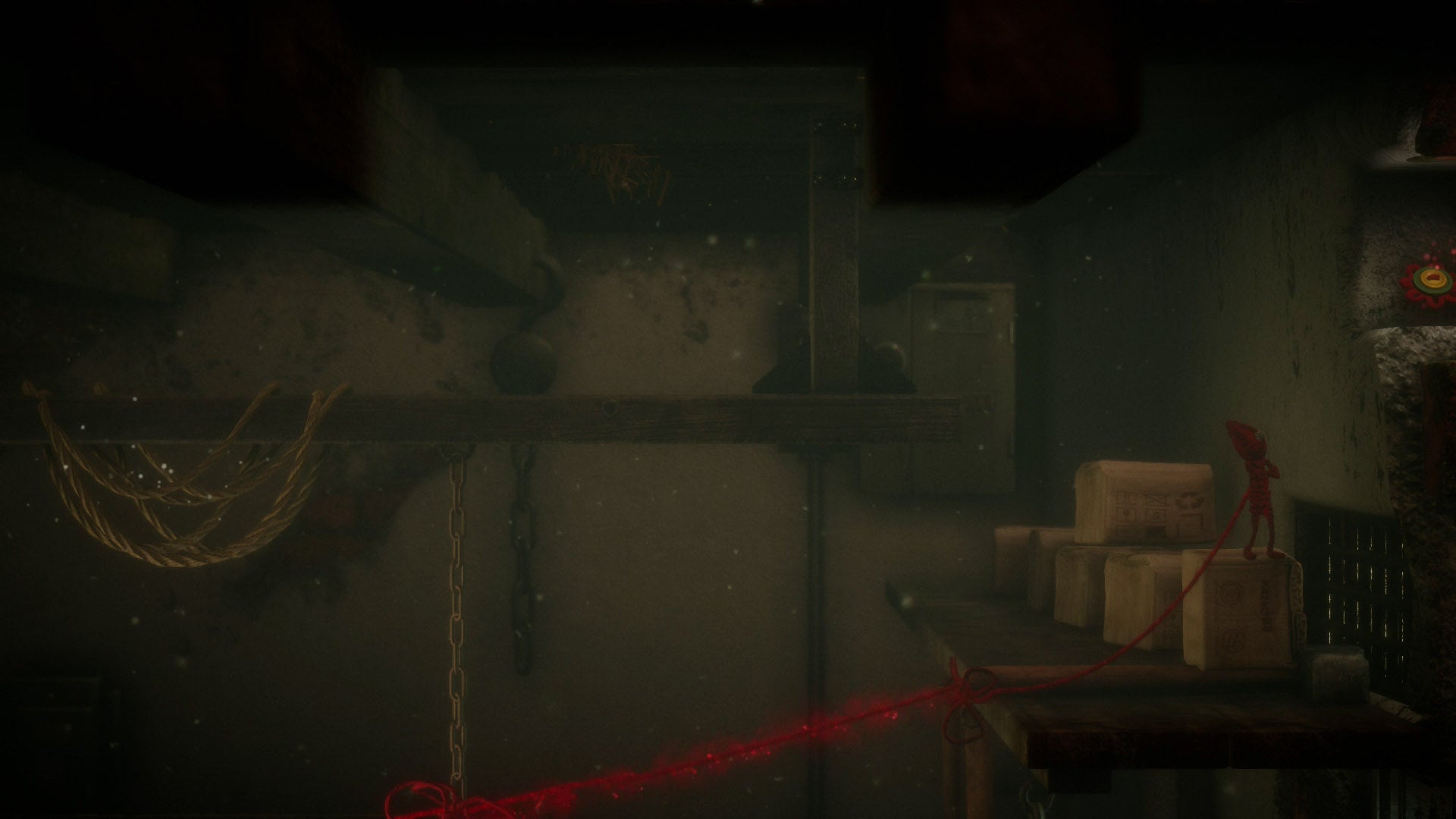 The third secret of the level is found after pushing a wheel, then jumping a small gap and restocking your yarn supply. Once you have the yarn, backtrack to the gap (you’re now anchored to the yarn refill) and rappel down. You’ll find the secret near the bottom, and can then climb back out.
