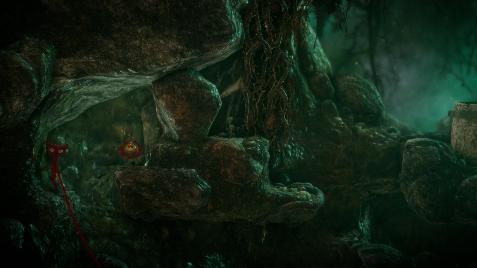 The second collectible of How Much is Enough can be found as you start to climb out of the cave where you found the first one. As you sit on an unstable rock, use your yarn to snag a rock up and to your left, pulling it down. This will launch Yarny into the air and take him directly to the secret.