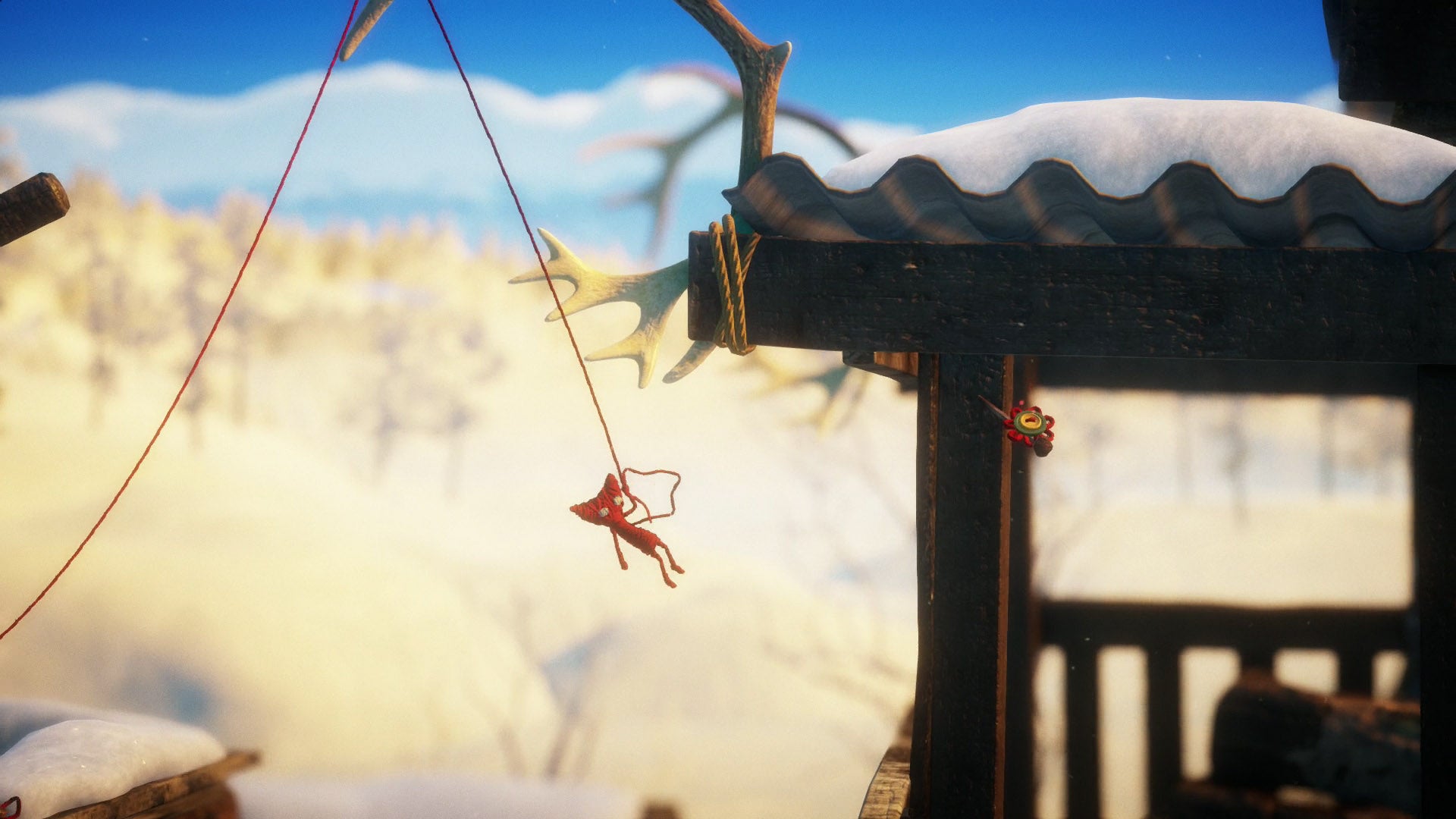 The final secret of Winter Sun can be found after dropping a large snowball into a tea kettle. Run and anchor yourself onto the deer antlers, tying yourself to it to keep from falling. Lower Yarny down and you should see the secret to the right. Swing to it, and then pull yourself back up to finish the level.