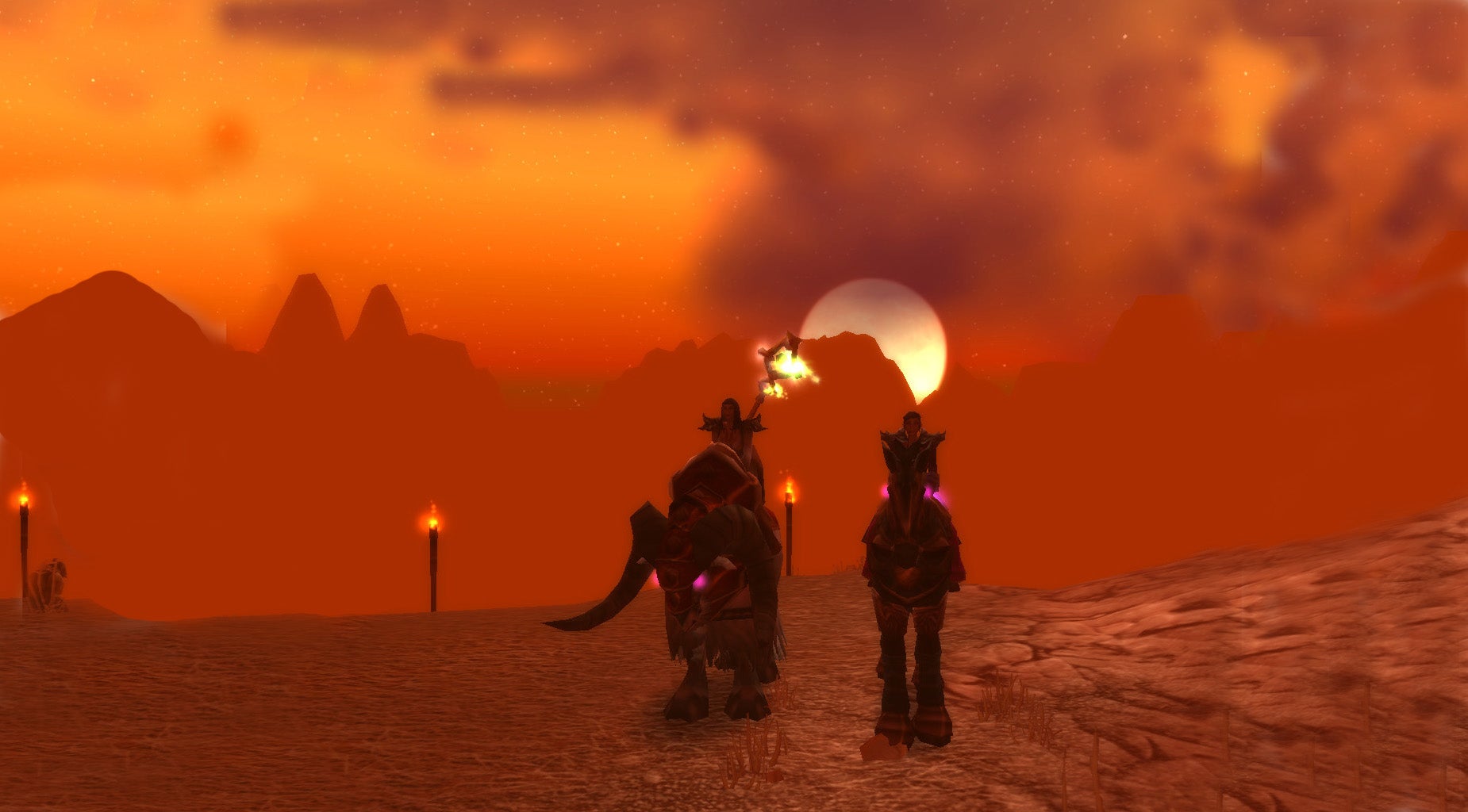 In those early days of WoW, before players geared up with armor that smoked, glowed or was animated in some weird and wonderful way, Benediction/Anathema's brilliant mist effect and cascade of dripping sparks was a huge attention-grabber wherever you went. I discovered this when, after a huge amount of effort, I earned myself the staff with two names. Wherever I went, people would ask me about it. They'd also ask me why did it have two names? That's because it's actually two staves in one: the golden glowing Benediction is for Healing Priests; clicking on it turns it into Benediction, a sinister-looking, purple smoking Shadow Priest staff.