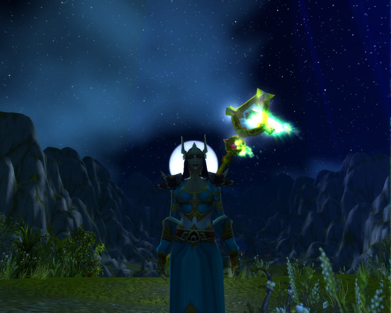 It's basically a first edition World of Warcraft Priest-only weapon whose acquisition required players to complete a series of sprawling, challenging quests, and win a rare drop from a difficult 40-person raid.