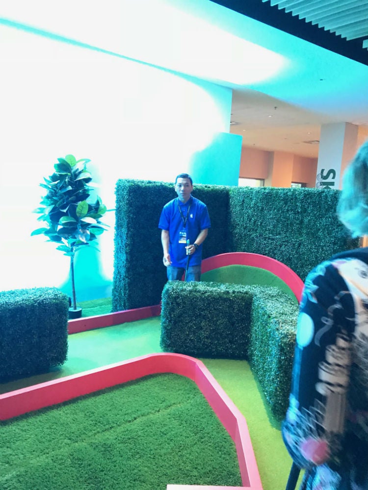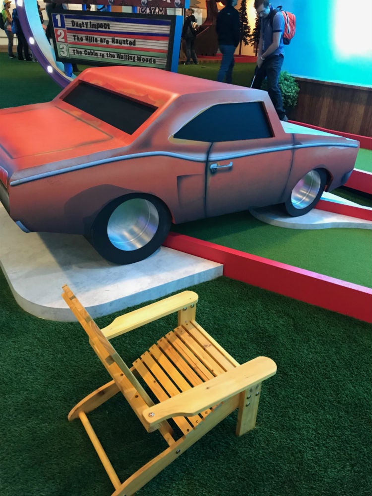 I've no right to act superior. One of my balls got stuck under a cardboard car prop at the Drive-In themed course. The staffer manning the hole had to get down on all fours and knock the ball loose with a club.