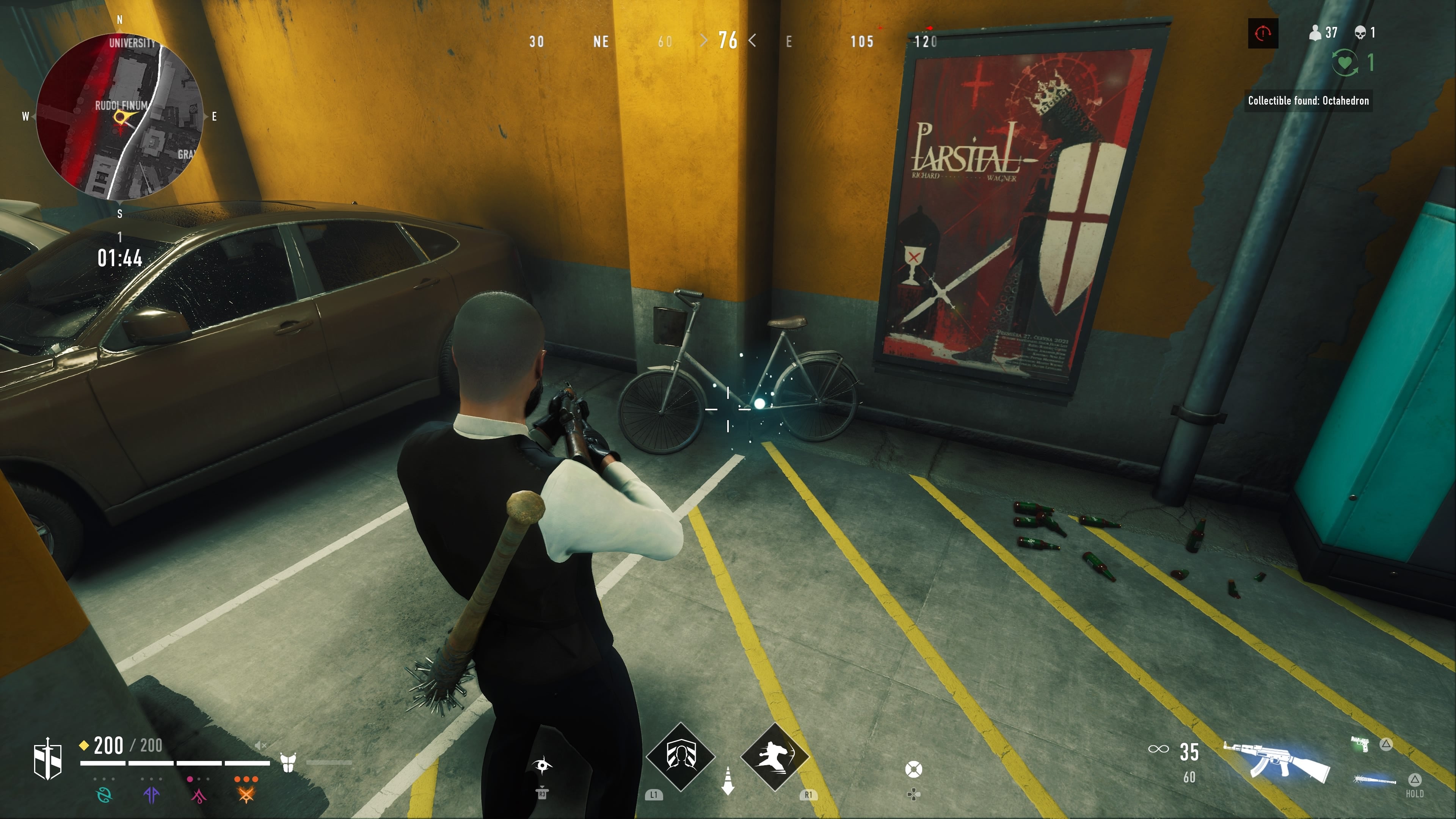 Once you’re in the underground car park, make your way over to a bike along the western wall, and you’ll find the bag.