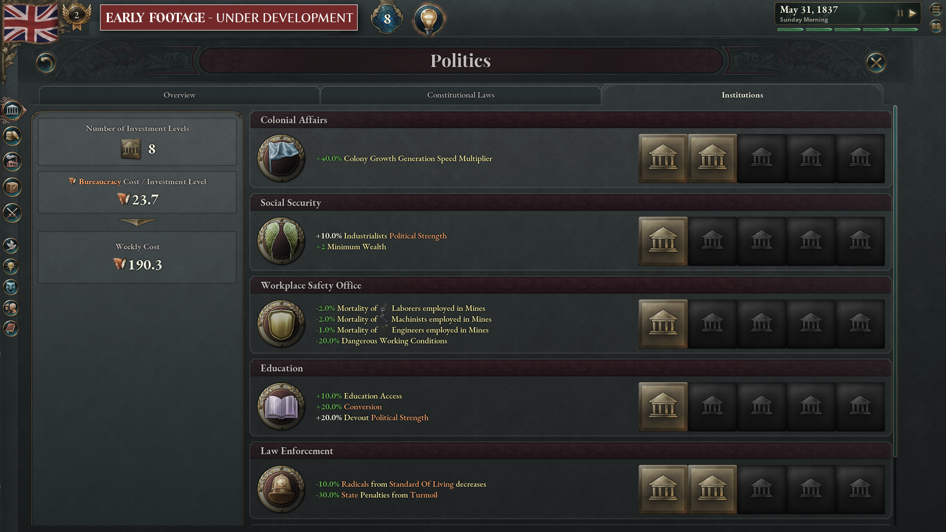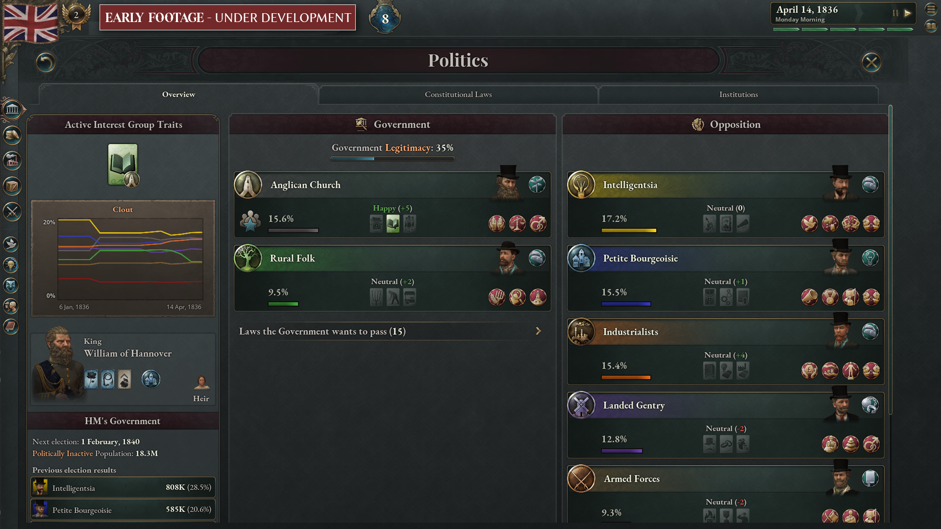 - Political Dealmaking: Manage competing interests in your government, opening up new reforms but risking revolution if key voices are not heard.