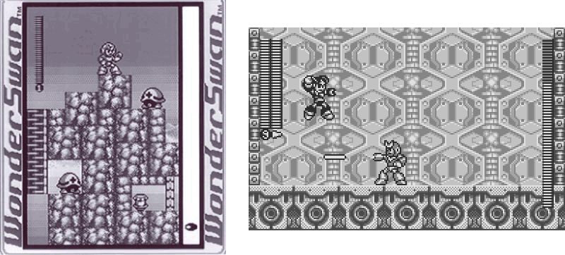 There was a pretty good Super NES/Game Boy Advance called Rockman & Forte/Mega Man & Bass. This has nothing to do with that; it was made by Bandai, who evidently had never created a video game before. Terrible level design, bosses, and powers make this the worst Mega Man game ever, even more wretched than those Hi-Tech Expressions PC games from the '80s. Plus, the game tried to take advantage of WonderSwan's ability to rotate 90º with terrible effect.