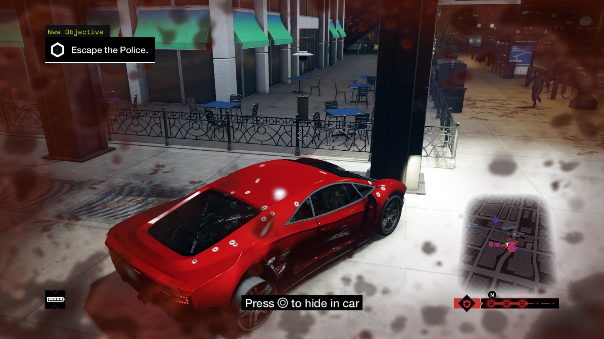 Watch Dogs has a number of these small problems. The hacking interface is well-done, giving you many options at the touch of a single button, but occasionally the option you want isn’t the one at hand. Focus seems a partial fix, letting you slow things down to target a specific hack, while the rest of the slack is taken up by the Neutralize feature that prioritizes hacks that will hurt pursuers. The smartphone menu interface feels slow and it never quite clicked with me. A similar complaint can be lobbed at the weapon interface. Again, all these features work, they’re not just as good as they could be.