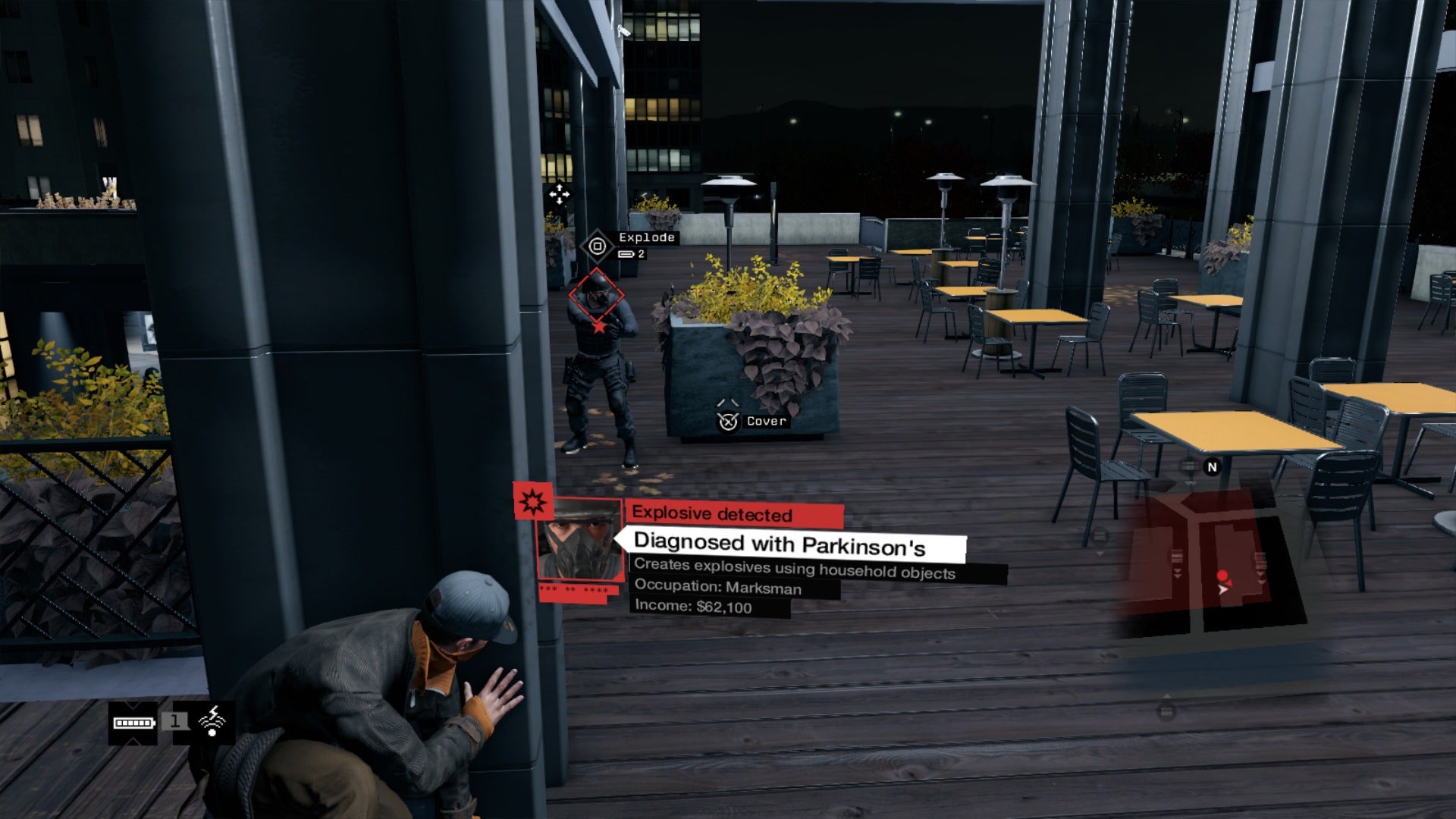 The new hacking mechanic combines with Splinter Cell: Blacklist’s take on cover and stealth to create something different. Watch Dogs wants you to watch areas from far away, hacking into cameras to scope out the situation and choose your targets. Hacking can be used to disrupt communications, prevent enemies from calling out for reinforcements, provide distractions, and outright kill folks in certain cases. I found myself hiding behind corners, waiting for one guard’s back to turn before knocking out another. Throwing lures to get a rent-a-cop into the right position. Activating a grenade on an enemy to take out him and a comrade.