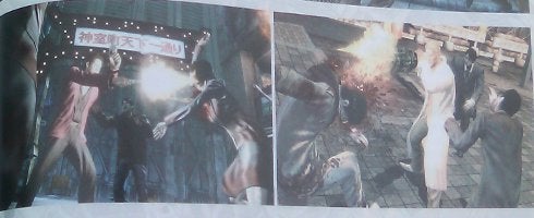 Anyway, you'll be able to choose from a number of Yakuza characters both past and present, and they'll wield customizable firearms - including a literal fire arm. As in, there's a shot of someone with a gun for an arm.