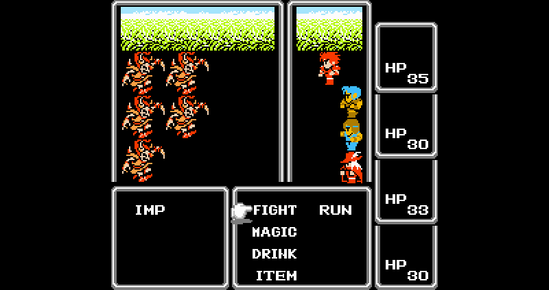 The first Final Fantasy laid the gameplay groundwork for most of the fifteen primary titles in the series' twenty-six-year history. Player characters on one side, enemies on the other side. A menu allows the player to command their chosen party in battle. The visual presentation of this combat may have changed over the decades, but this basic setup is what could be considered the gameplay core of Final Fantasy.