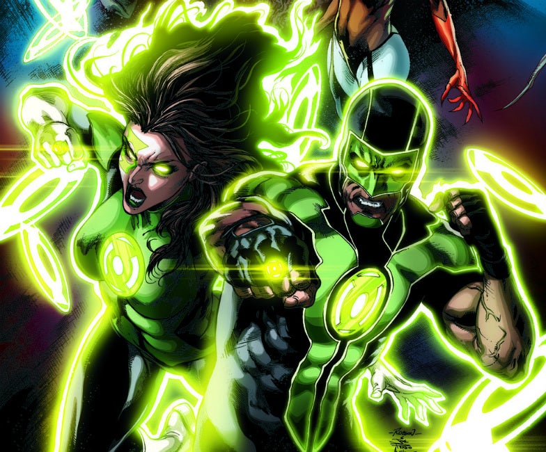 Green Lanterns doesn't feature any of the four heroes who have classically held the mantle. Geoff Johns previously created new GLs Simon Baz and Jessica Cruz, but neither character was utilized very well in the universe and this book is correcting that. It's a buddy cop book in the worse GL sector: Earth. Hal Jordan & The Green Lantern Corps is the traditional space-bound GL book, with Hal, Kyle Rayner, John Stewart, Guy Gardner, and the alien GLs up against Sinestro and his rival Corps.
