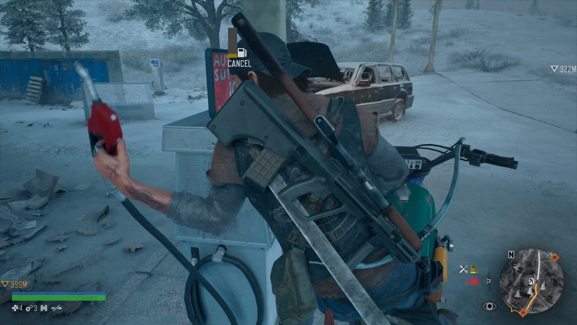 One aspect of Days Gone that is not made very clear from the outset is that you can fill up your bike’s fuel tank. Just look out for Fuel icons on your map, drive up and press Circle. This will completely fill up your Fuel tank while out and about.