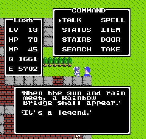 "The original Dragon Quest was very much a 1986-vintage NES game, and its age showed, even with its improved sprites and slimmed-down menus," writes Retronauts' Jeremy Parish in a blog. "The game's primitive tile-based graphics, heavily windowed interface, and sluggish movement would have been less detrimental when every game looked like that. But in 1989, we had gorgeous action games like Mega Man 2."