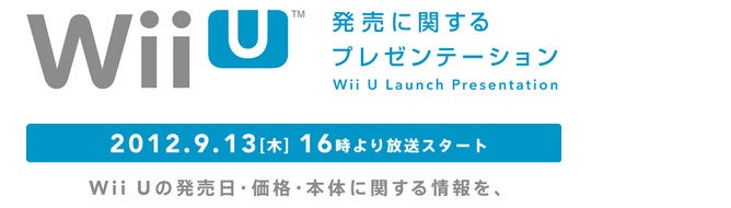 Company president Sarou Iwata posted the confirmation on the Nintendo Japan Twitter today, along with the Google translated message, "Good evening [Iwata], is Nintendo's Iwata. Than 16 hours on Thursday, 13 tomorrow, will be broadcast on the Internet "sale presentation on Wii U". Happy to announce the price and release date and other information of body Wii U."
