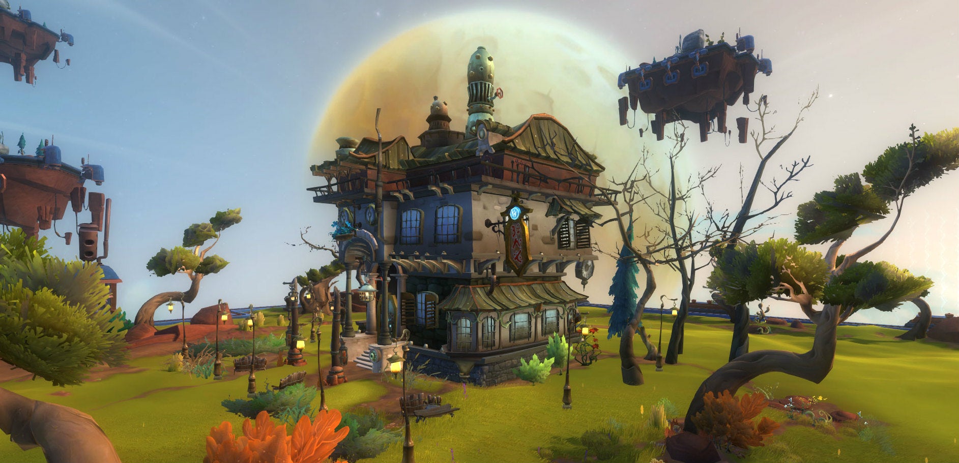 The telegraphs also extend into PVP, which can take place in various modes: there's normal open-world PVP, arena battles for 2v2, 3v3, and 5v5 combat, 10v10 battlegrounds, and the unique Warplots feature. Warplots allows guilds to purchase what amounts to a player-created raid fortresses, fill them with traps and bosses, and then join in an all-out war against another guild. The objective of each group is to surmount the obstacles and destroy the other team's generators. Both sides get XP, loot, and items to place in their housing plots for their troubles.