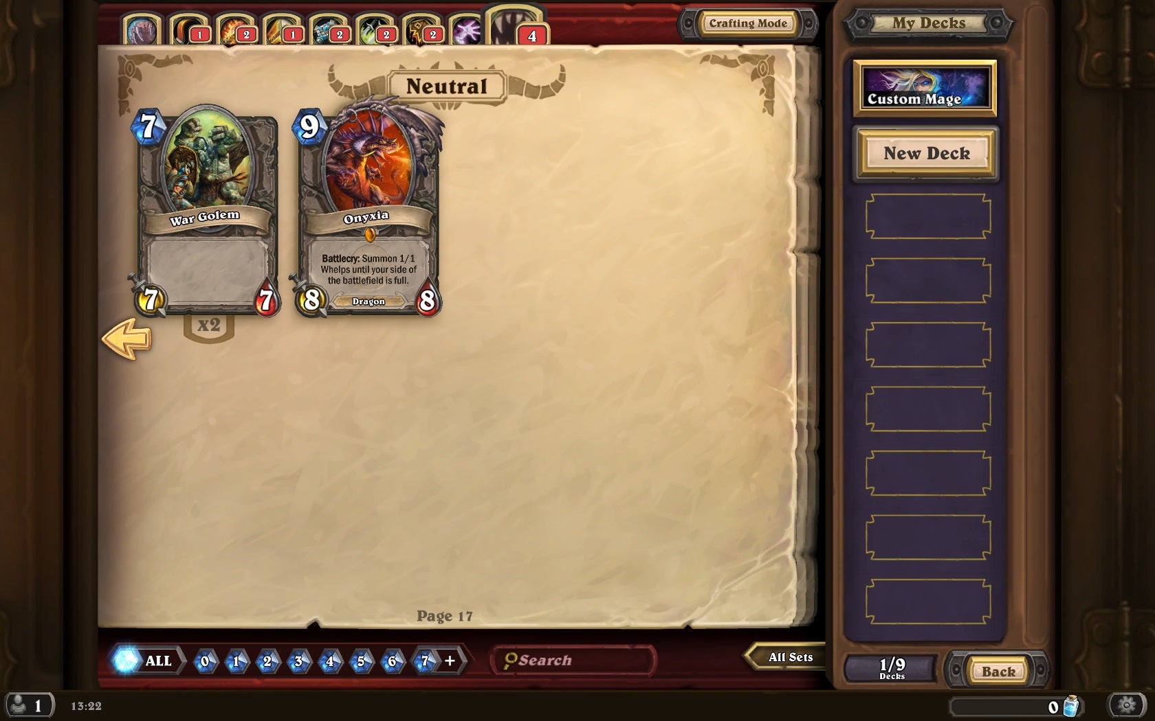 He's right not to. I didn't play well at all. I won through stupid luck of the stupid draw when a legendary card turned up in a pack I bought. I'm all for game-changers and table-turners, and rarity is the perfect way of distributing these things to players. Onyxia's not just a little too powerful, though -- she seems a little too smartly targeted on getting bad players like me back in the game and into a lead position. She encourages you to take risks by leaving your minion field empty, which is a great source of strategy if you are choosing to leave it empty as a calculated ploy, but too often that field is empty not by design, but due to good old incompetence. Onyxia can feel a little cheap.