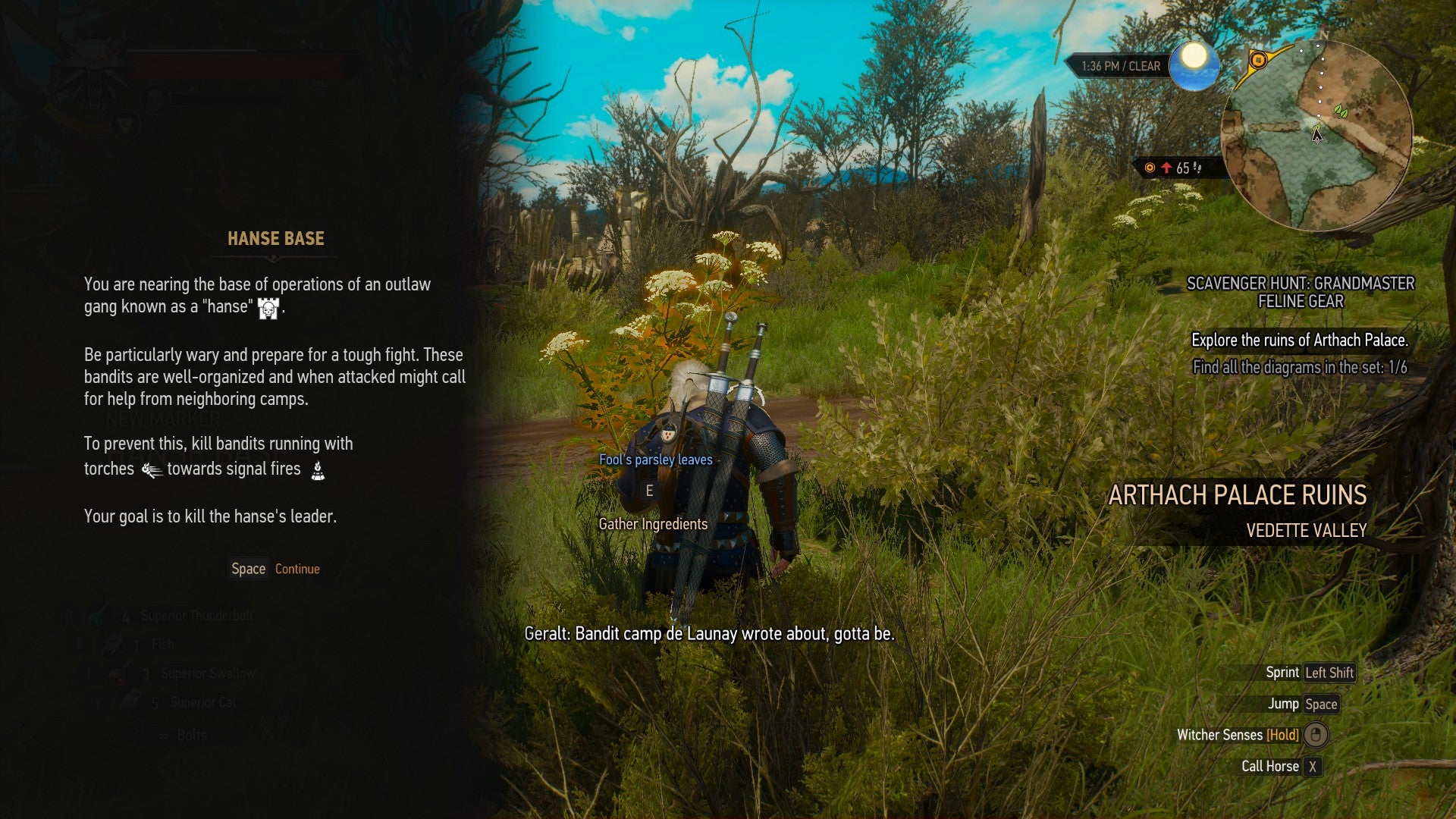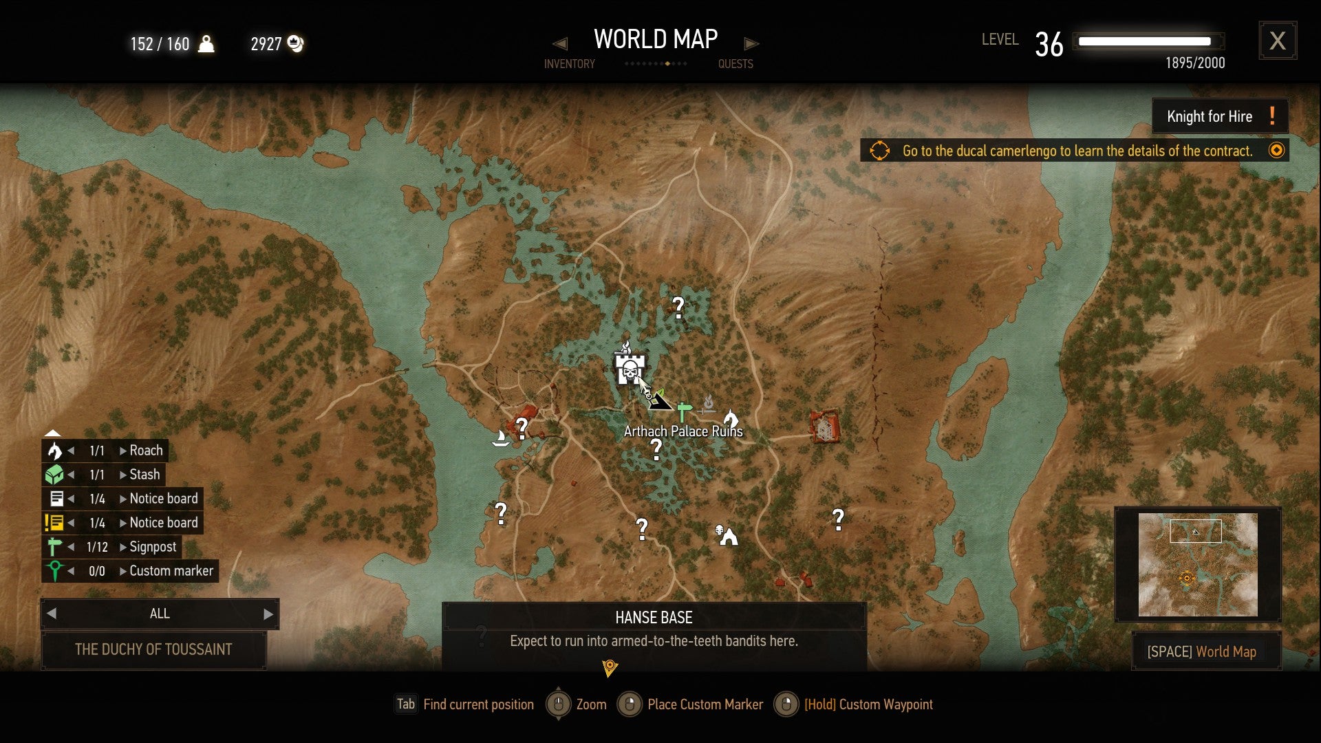 In order to utilise this, you'll have to own the Blood and Wine DLC, not to mention having accessed the region of Toussaint. One of the new additions in this area are Hanse Bases, essentially huge bandit camps filled with enemies. The intended idea is that killing all the bandits and their leader empties the base, whereupon Toussaint's knights can move in and turn it into an encampment. There are three of these massive camps in Blood and Wine, and for those who like combat they represent some of the high points of the game.