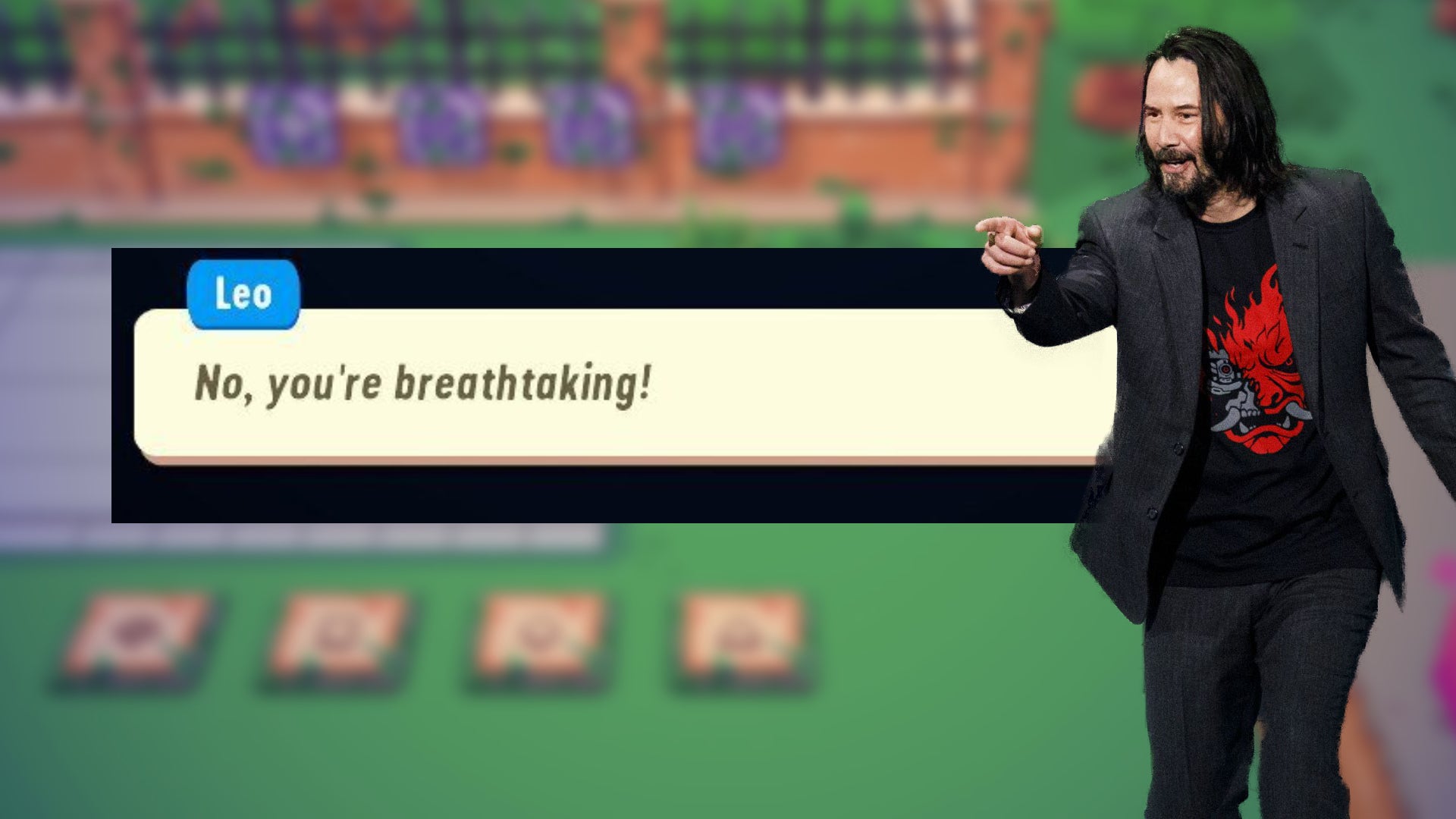 What I like the most about this cute little adventure from developers PanicBarn (published by No More Robots) is its tone. There are some neat nods to the real-life football world here and plenty of wry humour. A moment not too far into the game, sees what I am convinced is a reference to the now famous Keanu Reeves Cyberpunk 2077 E3 showcase moment. See for yourself below: