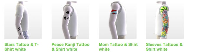 Microsoft may be dumping the guns from Xbox Live Avatar Marketplace, but in its place, in come tattoos. As Joystiq points out, the tattoos available consist of the usual from kanji writing, tribal stuff, hot rod flames and more. The same old deal. Prices go from 160/240 MS points, but it's worth noting the tats are also actually just shirts and tank-tops with tat designs instead of accessories.