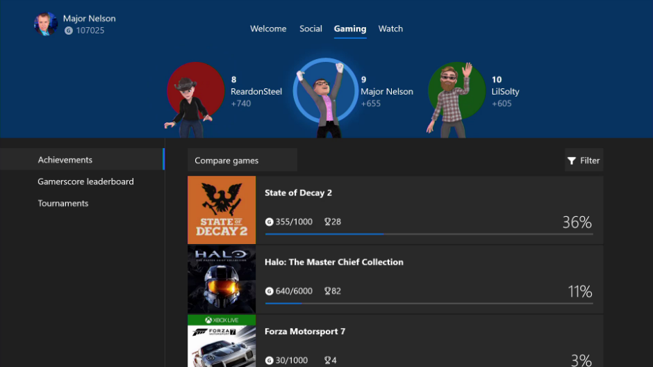 Following the recent revival of Avatars, update 1810 brings Avatars to the dashboard. You'll be able to see yours and your friends' on the dashboard. Avatars will also be available in user profiles, gamerscore comparisons, community posts, and even idle system notification.