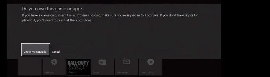 The message continued, "If you have a game disc, insert it now. If there is no disc, make sure you are signed into Xbox Live. If you don't have rights for playing it, you'll need to buy it at the Xbox Store."