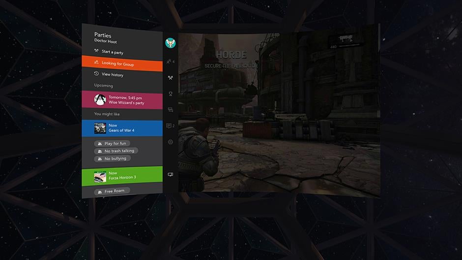 The app only works with Xbox One consoles connected to the same network as the PC your Rift is attached to. Take a look at the new screens below for an idea of how it's going to look: