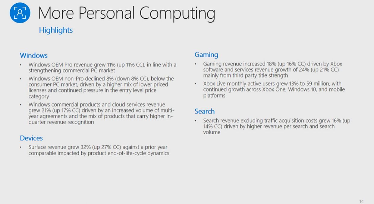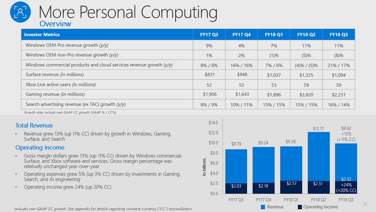 Total revenue in More Personal Computing, which houses the company’s Xbox business, was $9.9 billion for the quarter.