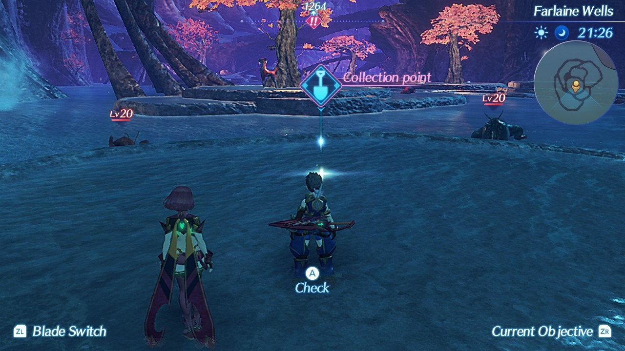 Collection Points can be found throughout just about any area across the entire map of Xenoblade Chronicles 2. If you activate a Collection Point, as pictured just below, Rex and company will briefly mine for valuable (or not so valuable) loot items.