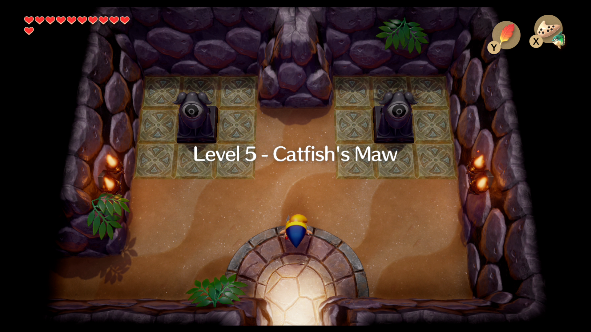 When you're ready, you need to head to Martha's Bay. This area is east of the beach - so you can go to the beach and past the ghost's house, jumping the gap - or you can go east from Mabe Village to Ukuku Prairie and then head south pretty much immediately. You can't miss the entrance to the dungeon, either way - it lives up to its name as it's a giant Catfish head, surrounded by rocks that seal it in.